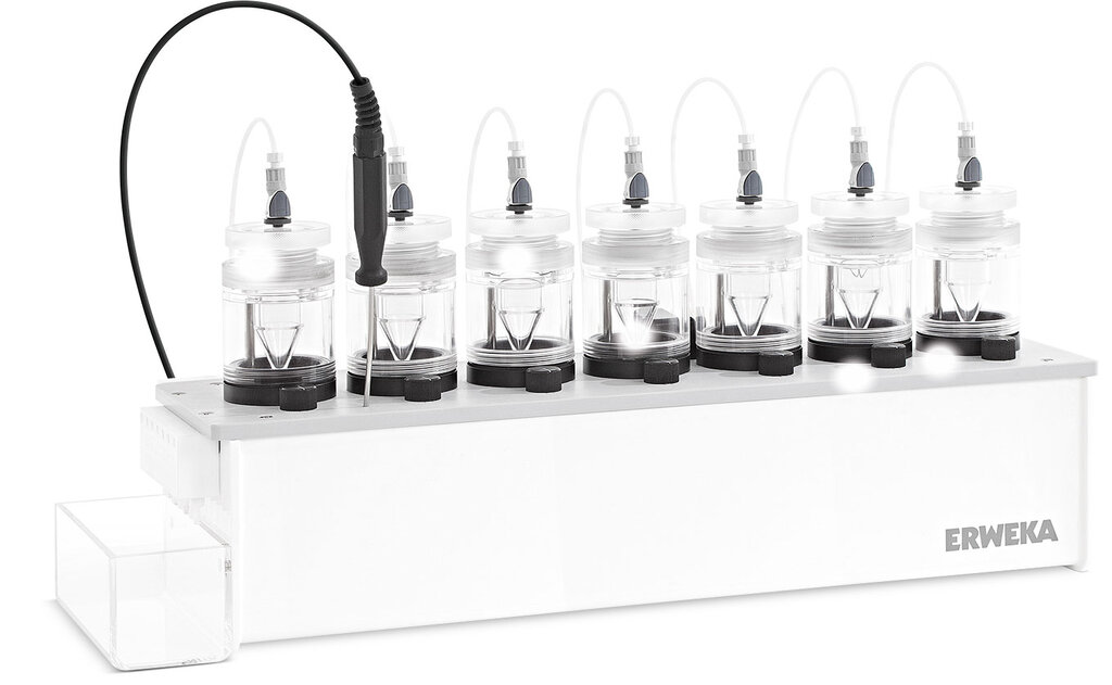 The new ERWEKA flow-through cell tester DFZ II can be used for various applications thanks to its wide range of available cell types, e.g. for testing poorly soluble products or low-dose formulations with sustained release.